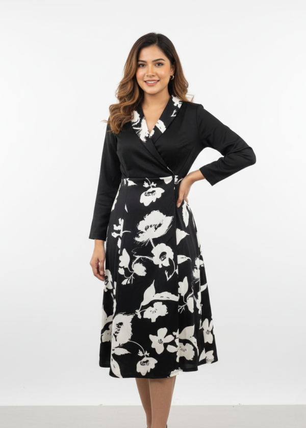 Long-sleeve dress with flattering v-neckline, stylish wrap-effect bodice
