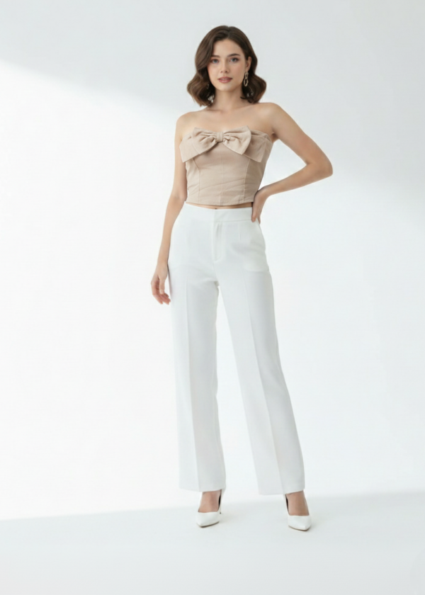 Elegant strapless padded top with flattering structured bodice, oversized bow